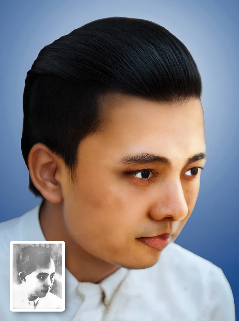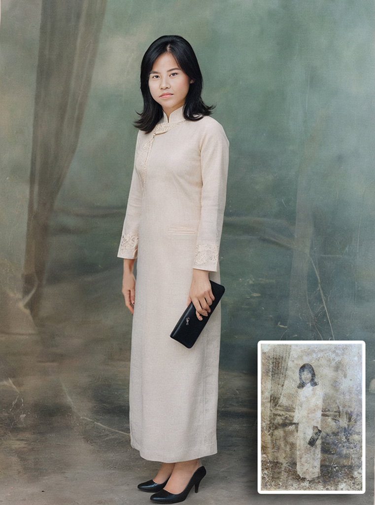 - Phục chế ảnh trắng đen sang màu: Sử dụng công nghệ AI kết hợp với vẽ tay thủ công để lên màu tự nhiên, giúp bức ảnh sống động như thật.